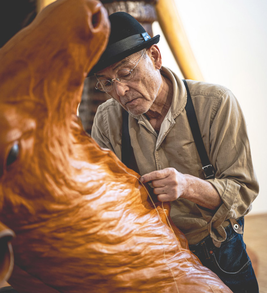 キャンプ道具に革の魅力を付加した第一人者でもあるPINOWORKSでは、ただ自分のキャンプスタイルを格好良くするためにレザークラフトを始め、のちに自身が作ったモノを欲しいと言われ続けるうちにブランドとして成り立っていった。現在ではその品質の高さや製品の造形美から日本だけでなく、海外からも評価されており、国外でもワークショップを行うなど、多岐に渡り活動している。
