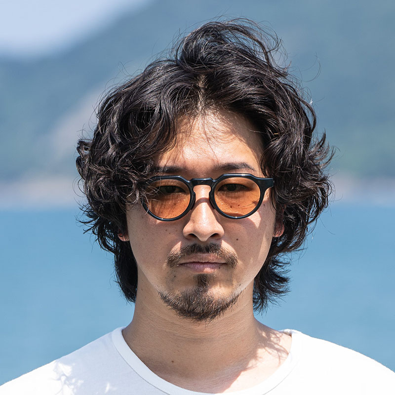 やや丸みのあるパント型のレンズシェイプにエッジの効いたフレームラインの再現にとどまらず、フレンチの持つ独創的な雰囲気を損なわないようブリッジと智のバランスを忠実に再現。また、サングラスシリーズでは初となるサンプラチナ製飾り付きカシメ丁番を採用し、フロントの印象とバランスを取るため合口9mmのワイドテンプルを合わせた。