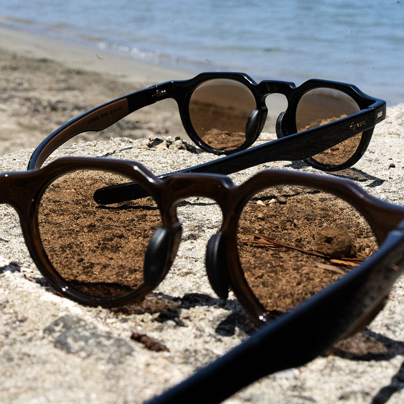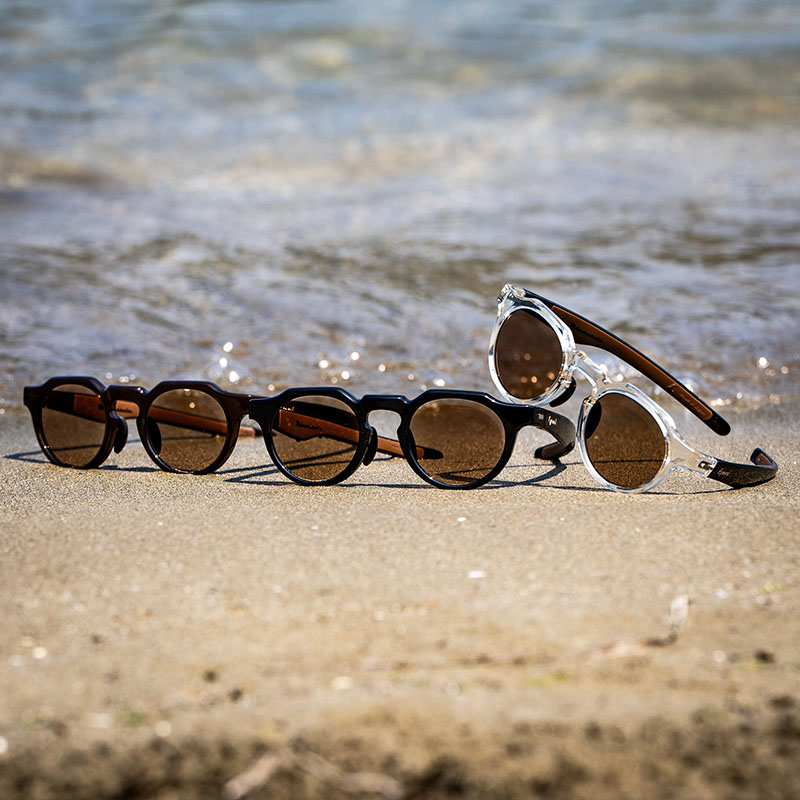 クラウンパント型フレームにアウトドア要素を盛り込み、フレンチヴィンテージの高いデザイン性に軽量性と機能性を掛け合わせた他に類を見ないサングラスに仕上がった。