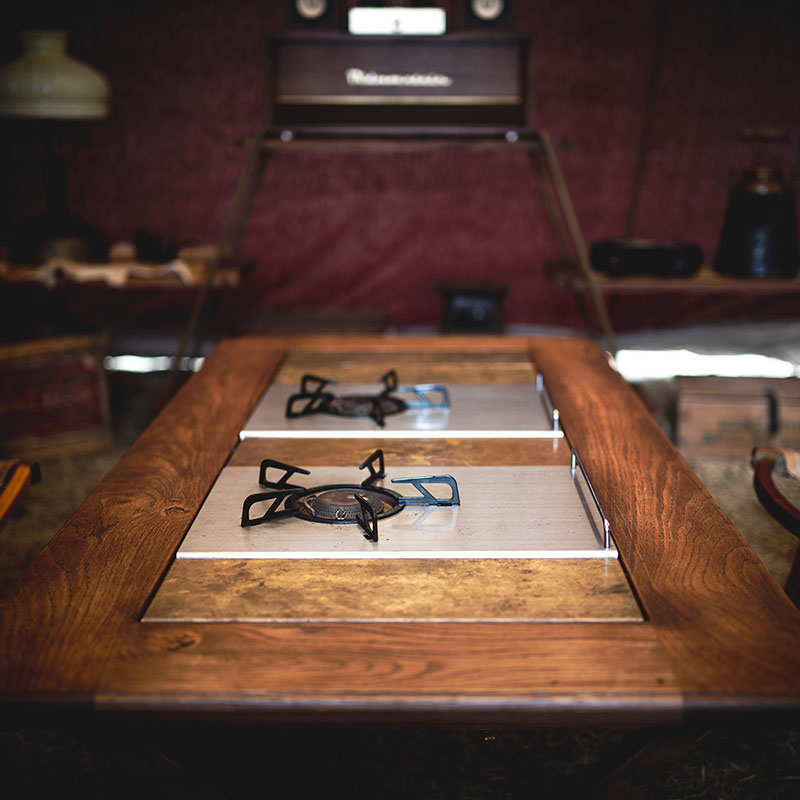 通常のNORAsフレームと比較して天板の大きさを長くすることで、2バーナー仕様にしても机としてのスペースが確保されるため、大人数でのキャンプにもおすすめ。