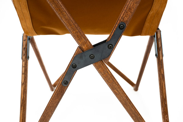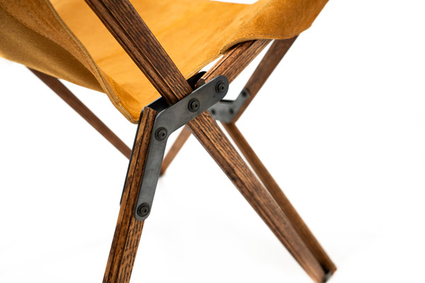 フレーム構造はビンテージのフォールディングチェアをモデルに、オーク材にはOLDMOUNTAINオリジナルの飾り加工を施したシンプルながらも存在感のあるデザインに。