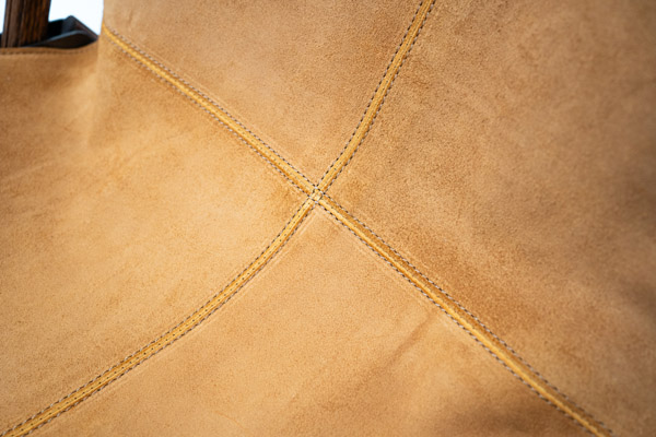 耐久性と見た目を兼ね備えたステッチ構造と補強材を使用し、背面にはコーデュラ生地を採用することで沈み込みも定位置で留めるよう調整。