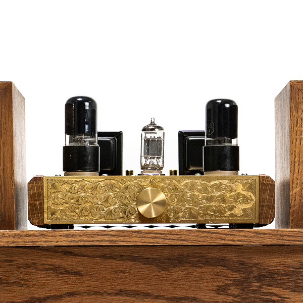 使用する真空管は6V6GT×2、12A×7×1、さらにスピーカーには惜しみなく無垢材を使用した上、 装着される真鍮パーツはすべて削り出しで製作されている。大量生産を前提としたメーカーにはできない仕様