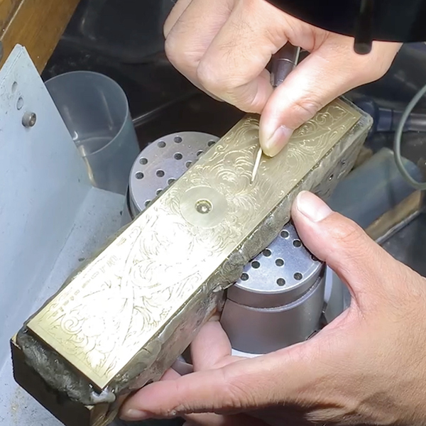 職人の手彫りによるスペシャル仕様の真鍮フロントパネル